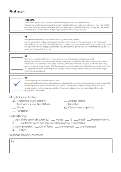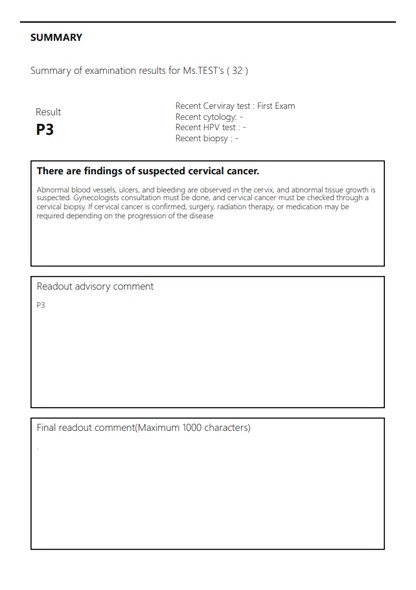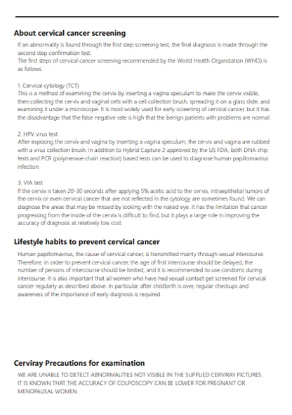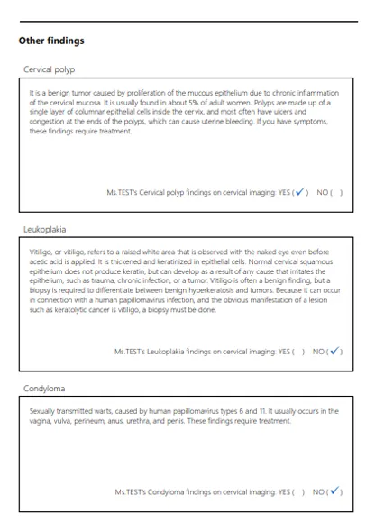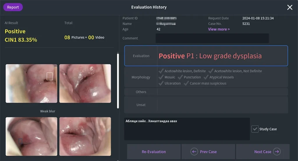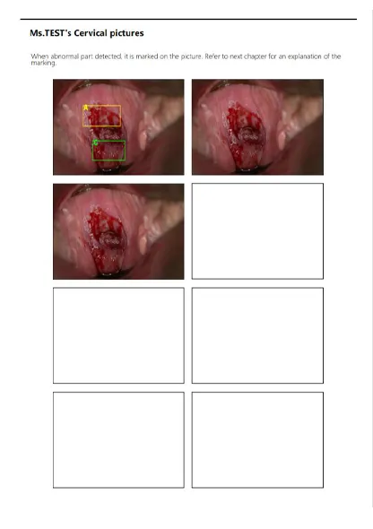 • Дэлгэрэнгүй тайланд Хиймэл оюун ухаанд үнэлгээ хийлгэхээр илгээсэн 8 хүртлэх зургийг бүгдийг нь оруулж болох бөгөөд эмгэг өөрчлөлтүүдийн талаарх дэлгэрэнгүй мэдээллийг оруулсан байдаг.
